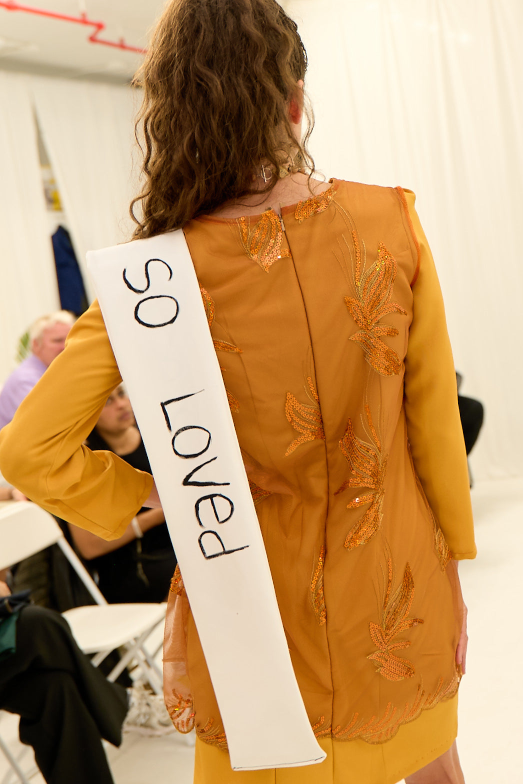 Beautiful bright Yellow dress with beaded lace layer on bodice made exclusively for JulissaDesigns Collection SS 2026 showcased during New York Fashion Week.